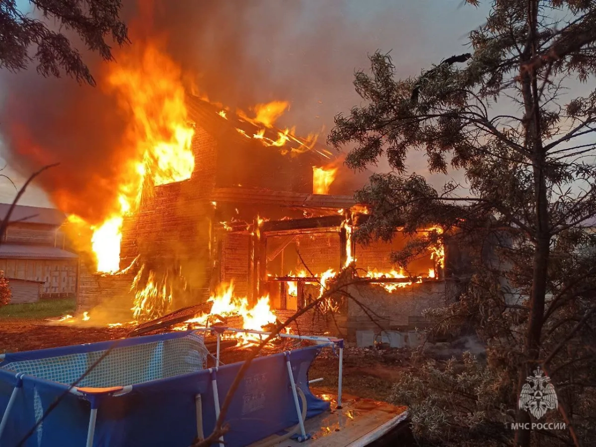В Архангельской области на пожаре погибли брат с сестрой. Видео © Telegram / МЧС России