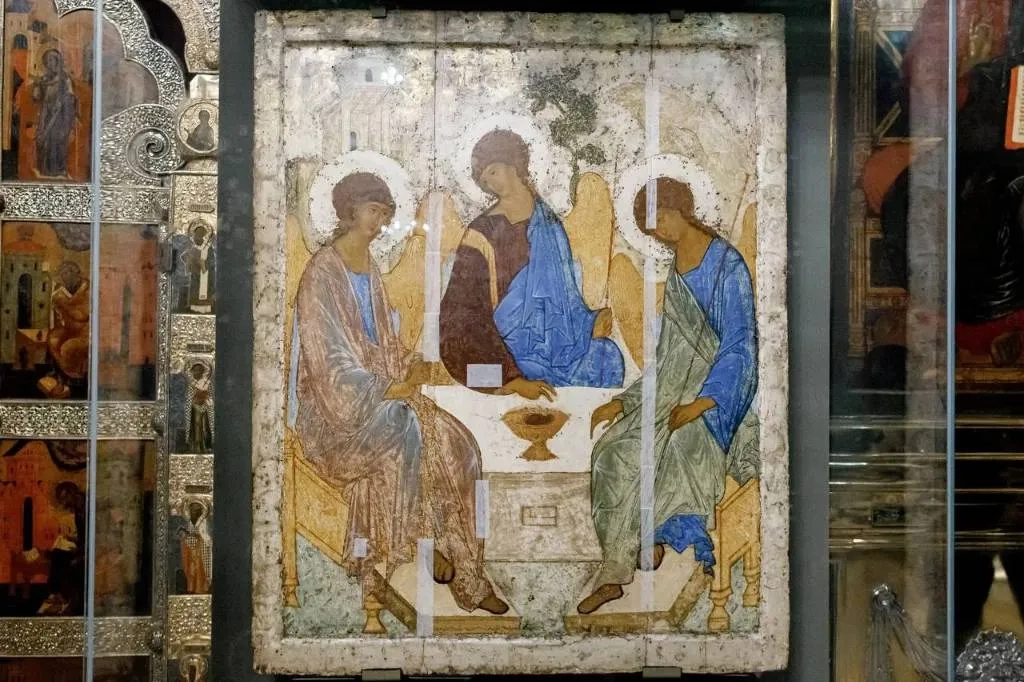 "Троица" была написана Андреем Рублёвым в первой половине XV века для местного ряда иконостаса Троицкого собора по просьбе преподобного Никона Радонежского — ученика и преемника преподобного Сергия Радонежского. Эта работа является одной из самых прославленных русских икон. Пробыв в Троицком соборе половину тысячелетия, в 1929 году она была передана в Третьяковскую галерею. А 12 июля 2023 года было принято решение о передаче "Троицы" в безвозмездное пользование Троице-Сергиевой лавре. Потом святыню отправили на реставрационные работы в центр Грабаря.