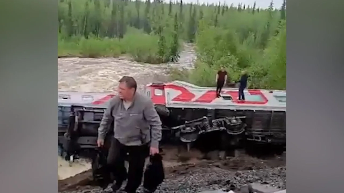 Видео с места схода вагонов пассажирского поезда в Коми. Видео © Telegram / SHOT