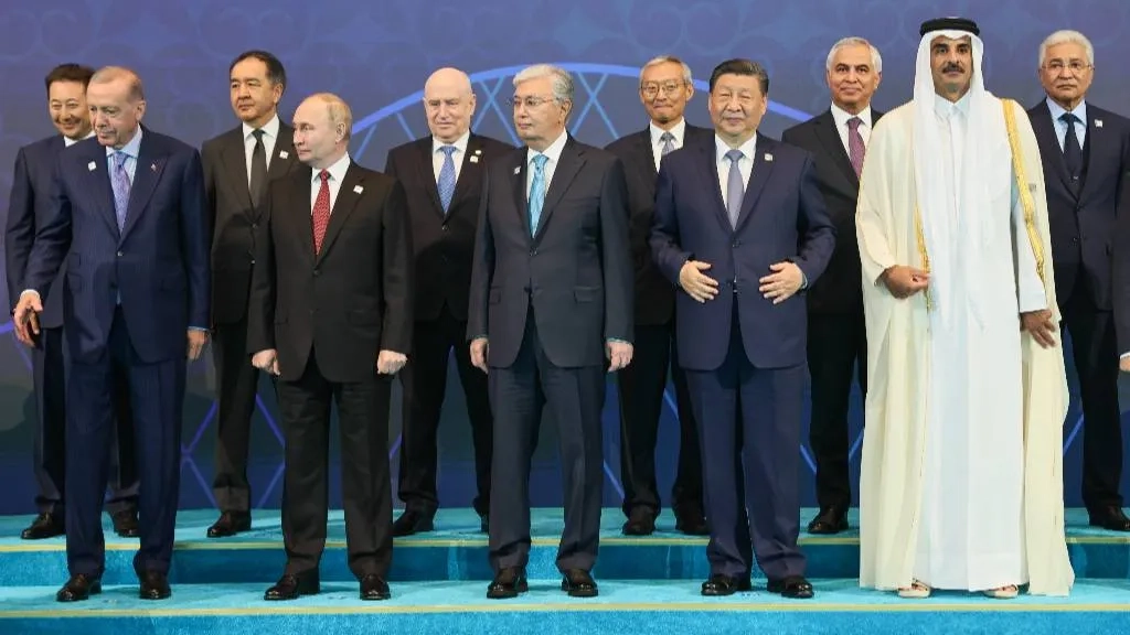 Главы делегаций государств – членов ШОС, государств – наблюдателей в ШОС, приглашённых государств и приглашённых международных организаций. Обложка © ТАСС / POOL / Сергей Савостьянов