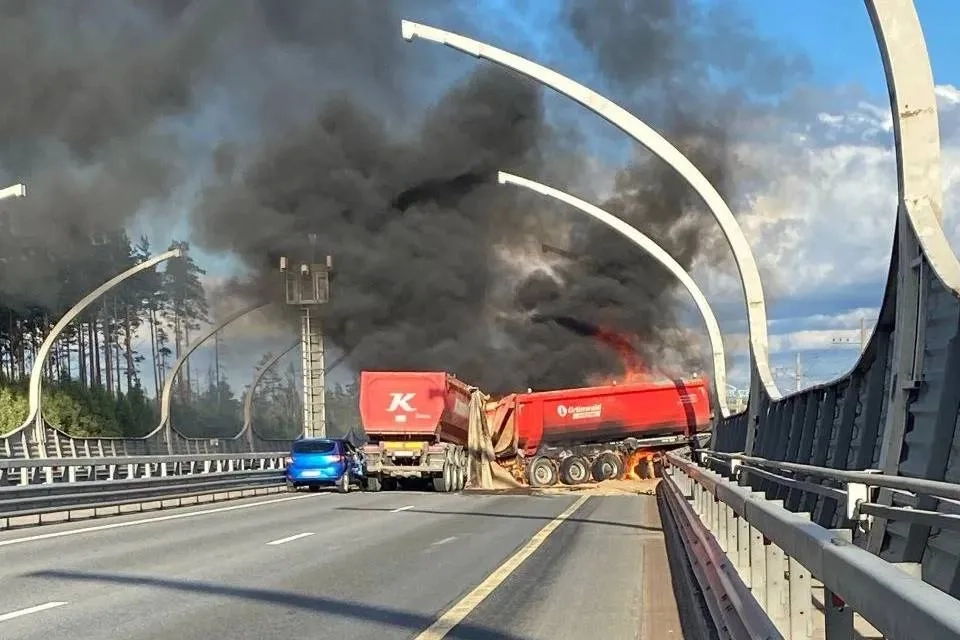 В Петербурге после ДТП на скоростной трассе вспыхнула фура