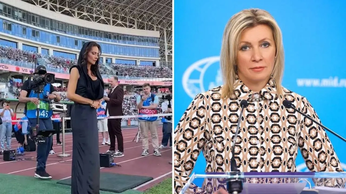 При этом сама Захарова присутствует на трибунах стадиона. Встреча команд приурочена к 80-летию освобождения Белоруссии от немецко-фашистских захватчиков.