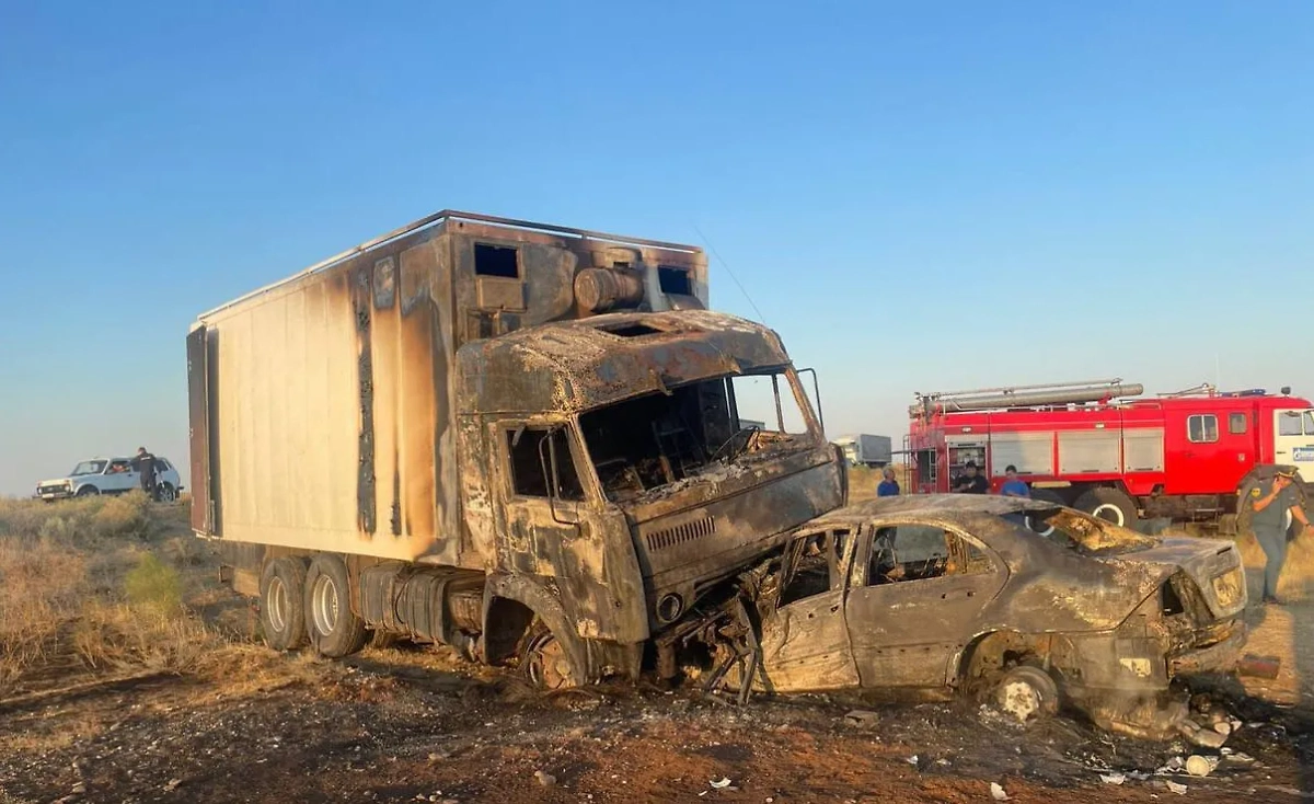 КамАЗ протаранил "мерседес" в Калмыкии, в иномарке сгорели 5 человек, в том числе ребёнок