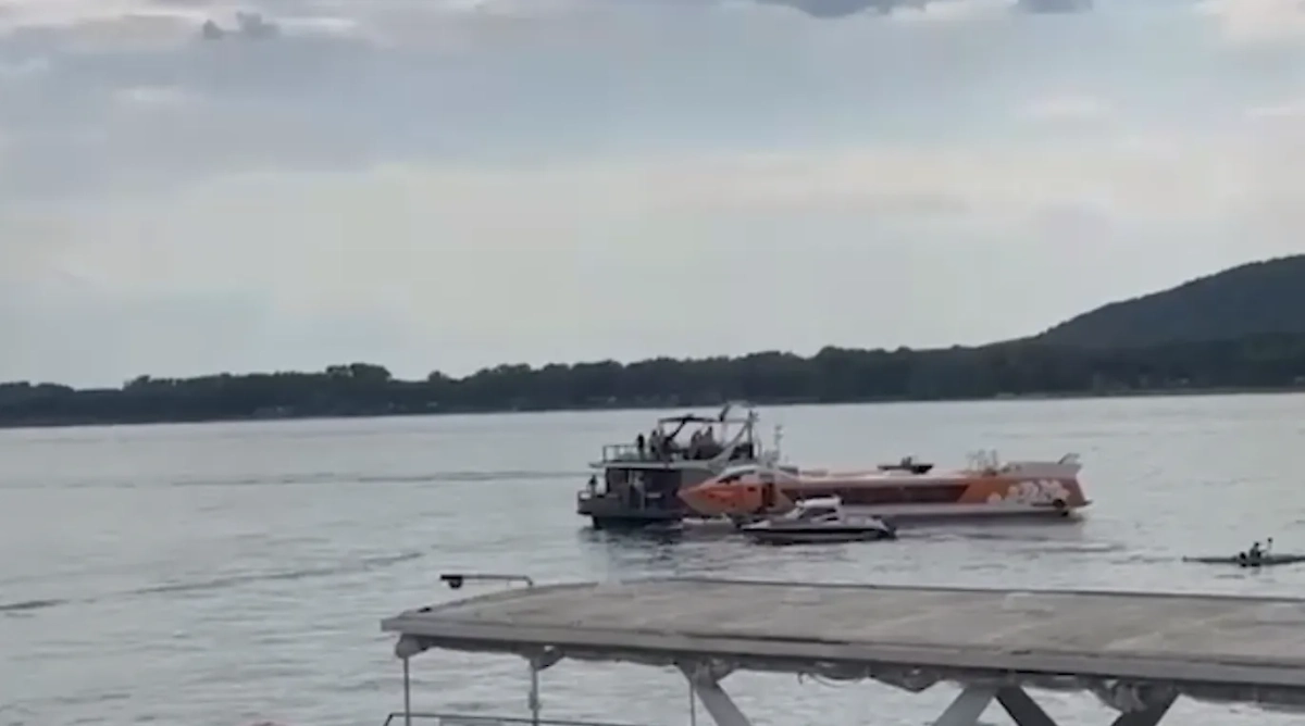 Кадры с места ЧП, где столкнулись два судна. Видео © Telegram / Самара ДТП