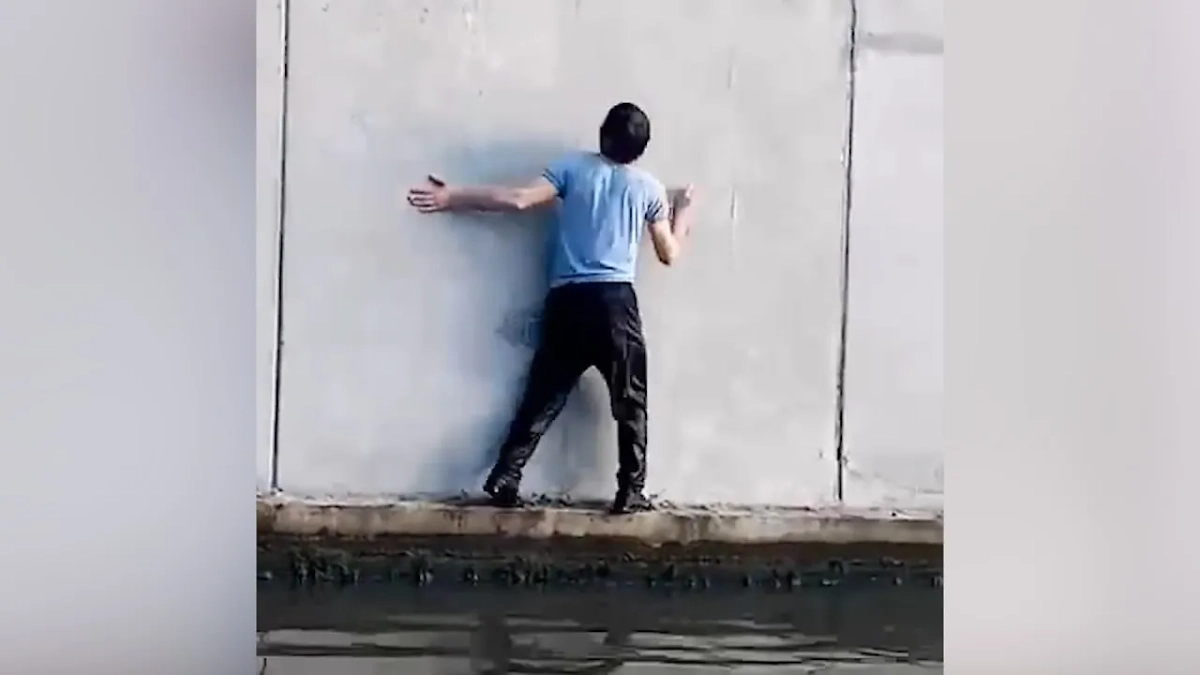 Неадекват, устроивший заплыв в Яузе, выкинул нож в реку. Видео © Telegram / SHOT