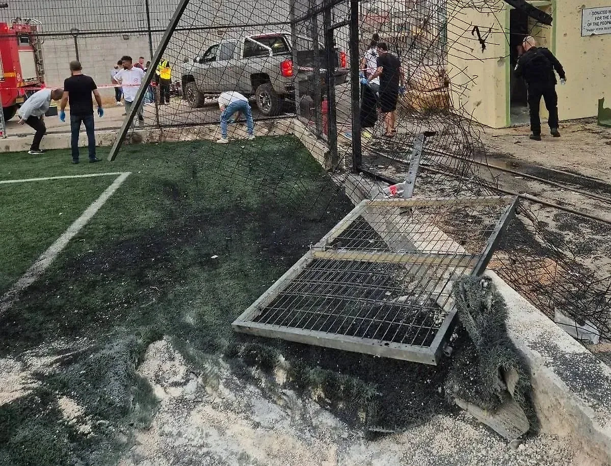 Футбольная площадка после падения ракеты в посёлке Мадждаль Шамс. Обложка © Пресс-служба ЦАХАЛ