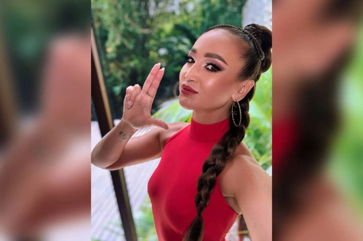 Бузова показывает свой фирменный жест. Обложка © Telegram / byzovahouse