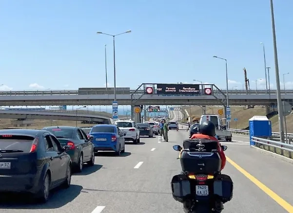 1,2 тысячи машин стоят в очереди у Крымского моста со стороны Кубани