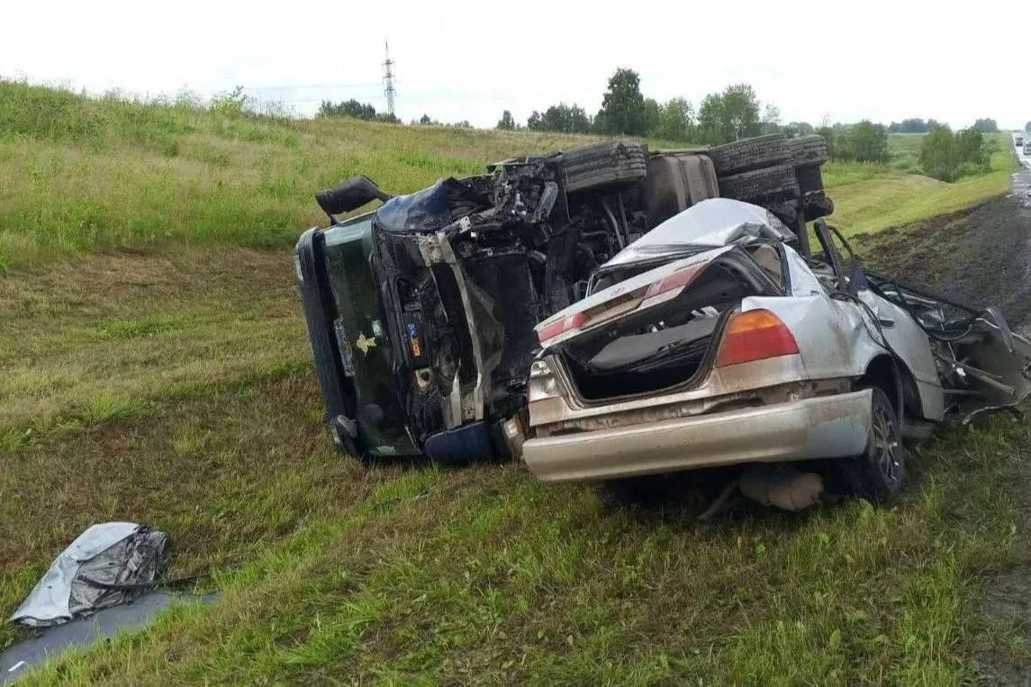 Грузовик расплющил легковушку под Красноярском, пять человек погибли