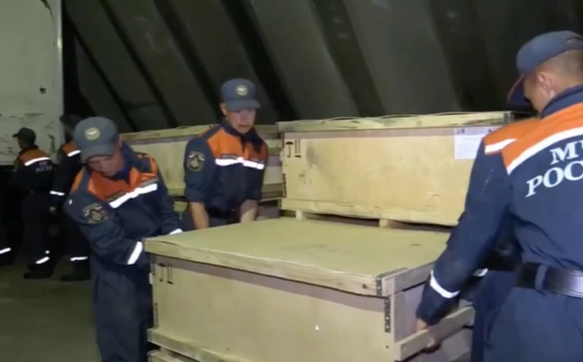 Доставка гуманитарной помощи для переселенцев в Курской области. Видео © Telegram / МЧС России