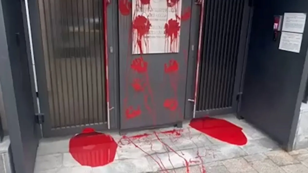 Двери посольства Литвы в Москве облили красной краской