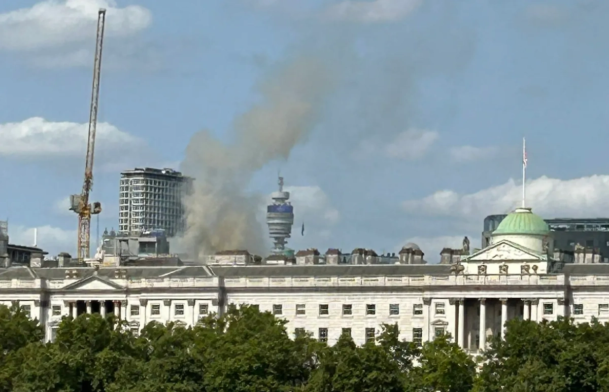 Пожар в историческом здании Сомерсет-Хаус в Лондоне. Видео © X / Target_Reporter