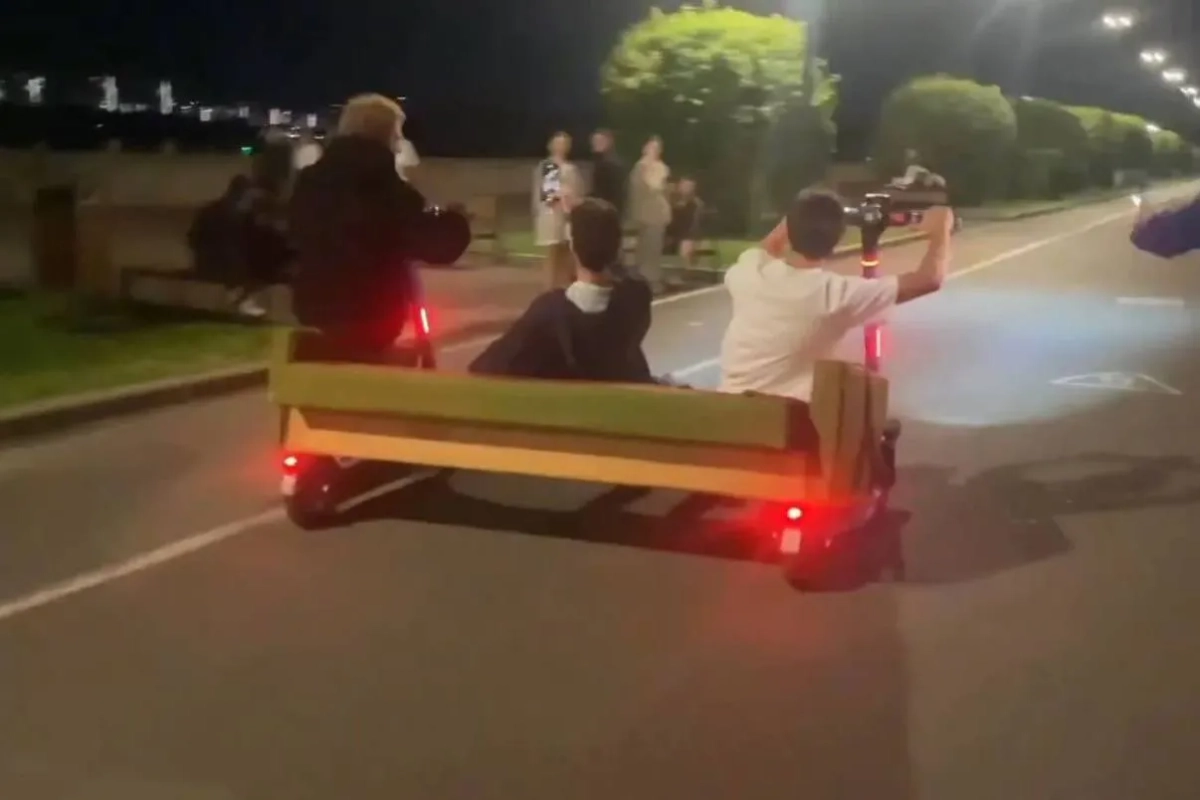 Подростки на самокатах устроили экстрим-покатушки с ванной и диваном в Красноярске