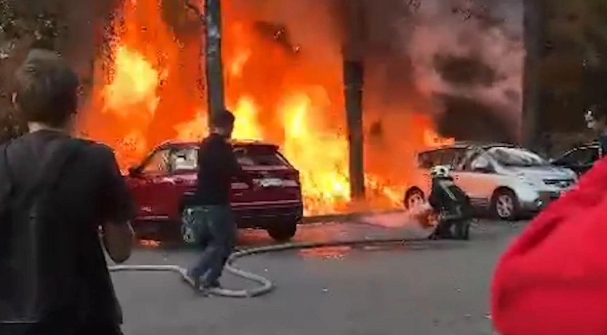 Ребёнок поджёг парковку в Москве. Видео © SHOT