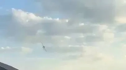 Сбитый БПЛА упал на территории частного жилого дома в Подмосковье. Видео © Telegram / SHOT
