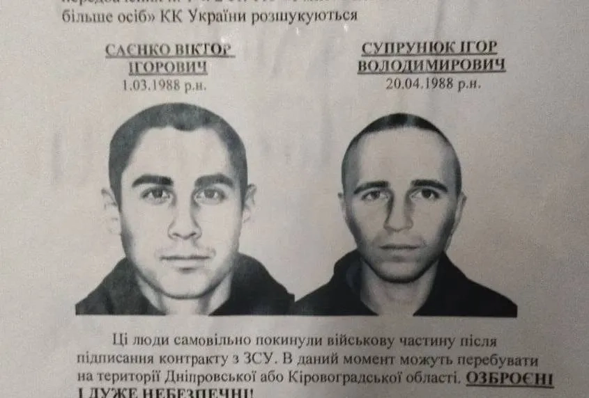 «Днепропетровские маньяки», разыскиваемые на Украине после побега из военной части. Фото © Telegram / «Военный обозреватель»