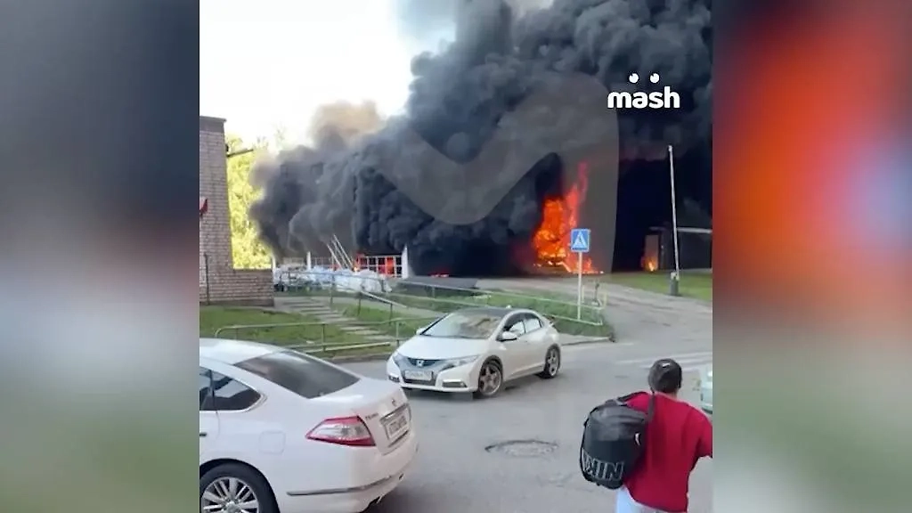 Чудовищный пожар пожирает многоуровневую парковку с десятками авто в Одинцове, внутри люди