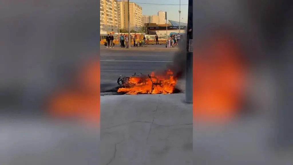 В Москве во время поездки под водителем вспыхнул скутер. Видео © SHOT