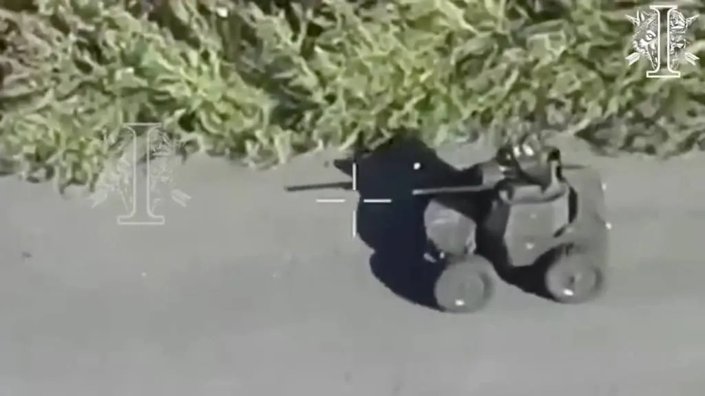На опубликованных кадрах можно увидеть, как дрон едет по асфальтированной дороге, без проблем проезжая мины, которые не реагируют на лёгкую технику. После этого робот начинает вести огонь по российским позициям из пулемёта калибра 7.62.