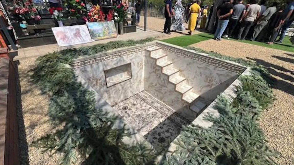 Итак, для покойника экстра-класса строят подземную гробницу, отделывая её стенки белой плиткой или кирпичом, строят к ней лестницу, а внутри неё, конечно же, будут висеть ковры. В земле даже делают специальную выбоину, чтобы оборудовать в ней бар с алкоголем, картинами и различными украшениями. Алкоголь по традиции приносят для того, чтобы усопший «мог опрокинуть стопку» с другими обитателями загробного мира. Кстати, в этой усыпальнице объёмом 19 м³ удалось разместить 90 литров алкоголя.