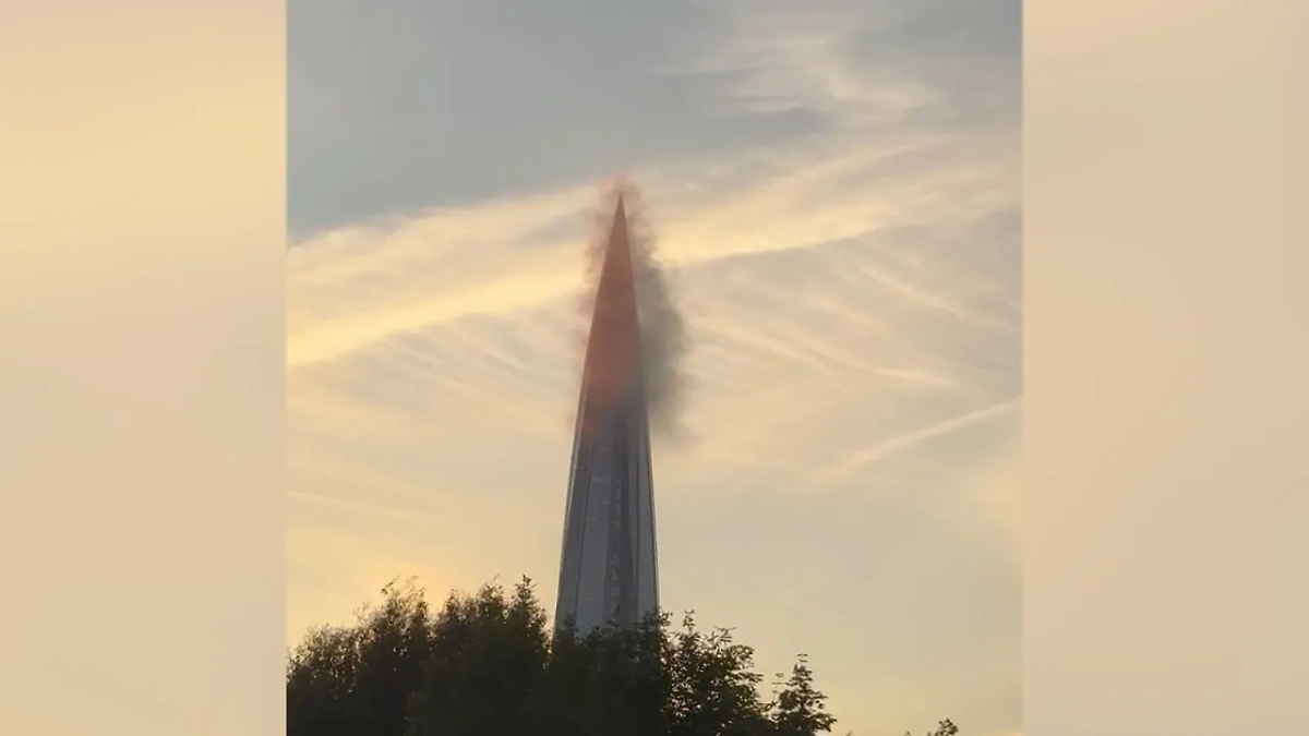 На кадрах, опубликованных в местных телеграм-каналах, действительно видна чёрная дымка на фоне закатного неба на фоне двух конденсационных следов от самолётов. Ошибиться здесь действительно немудрено, но, к счастью, в этом случае всё обошлось — ни дыма, ни огня. Как сообщает источник 78.ru, серые клубы — просто испарение, возникшее из-за того, что внутри башни тепло, а на улице стало заметно холоднее.