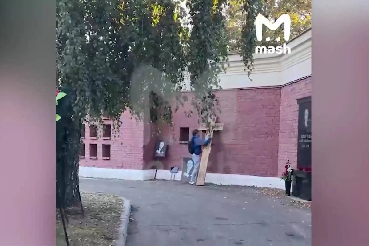 Вандал разгромил могилу Маслякова на Новодевичьем кладбище. Видео © Telegram / Mash