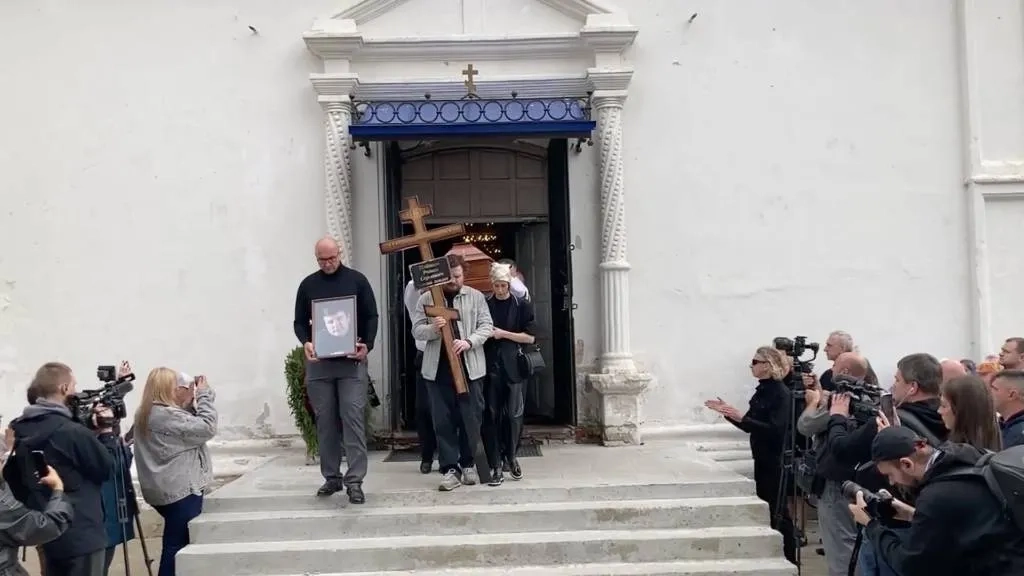 На кадрах видно, как гроб с телом артиста выносят из храма Архангела Михаила в Бронницах Московской области. При этом собравшиеся аплодируют. Многие люди плачут.