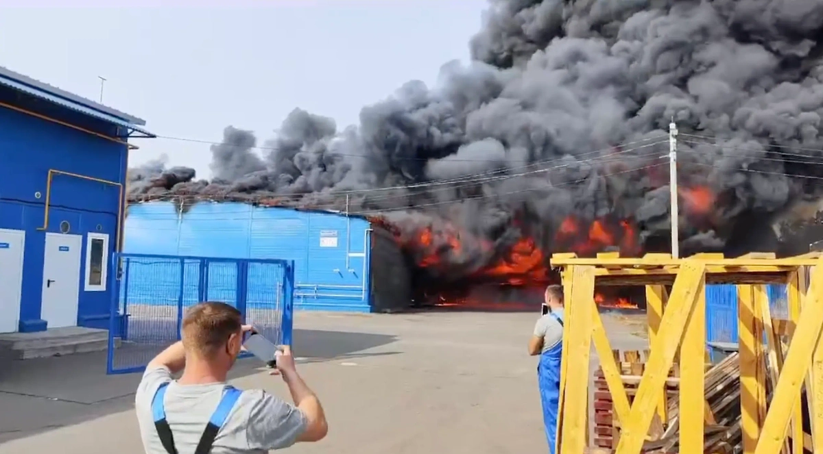 SHOT: В Воронежской области на двух тысячах квадратов горит склад с пропиленом