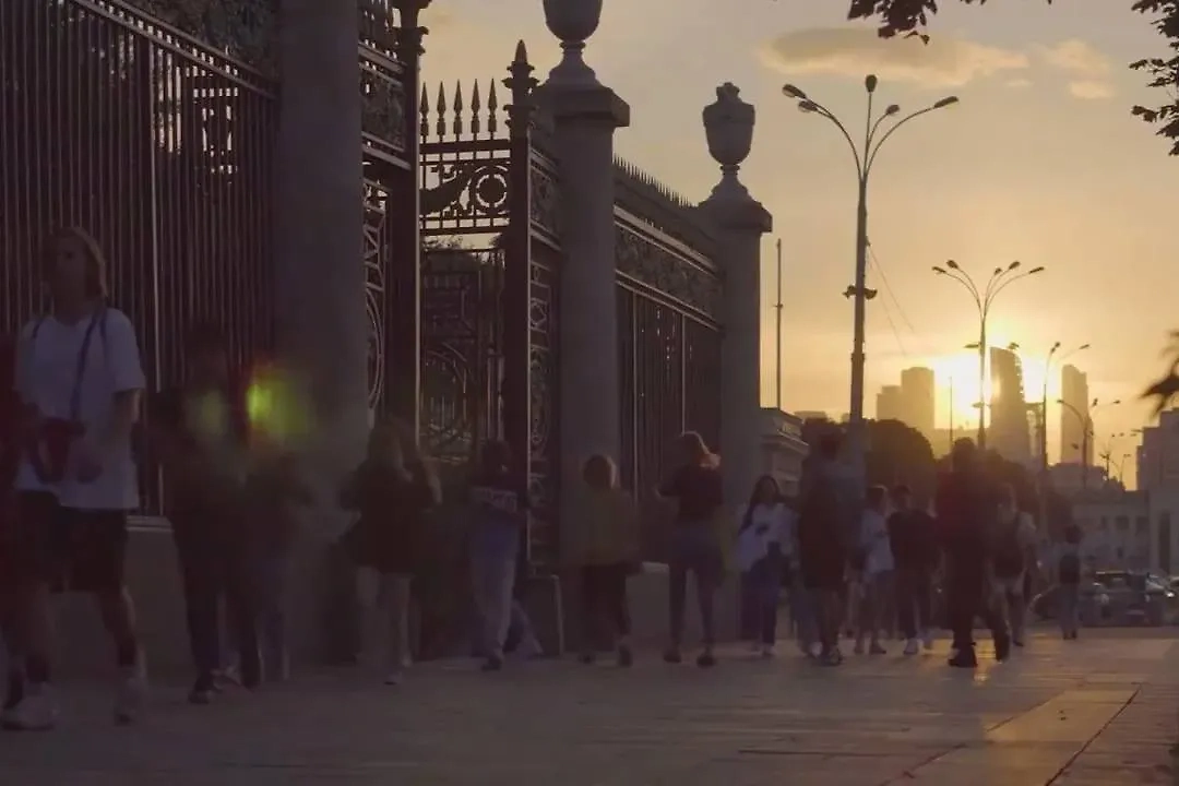 На это обратили внимание пользователи соцсети X в комментариях к публикации. В начале видео видны люди, идущие мимо ворот парка, а на фоне запечатлены небоскрёбы «Москва-Сити».