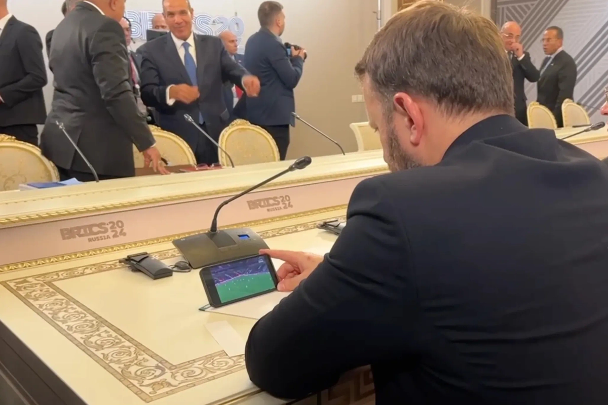 В перерывах между двусторонними встречами на саммите БРИКС Максим Орешкин посмотрел матч ЦСКА с «Ахматом». Видео © Telegram / SHOT