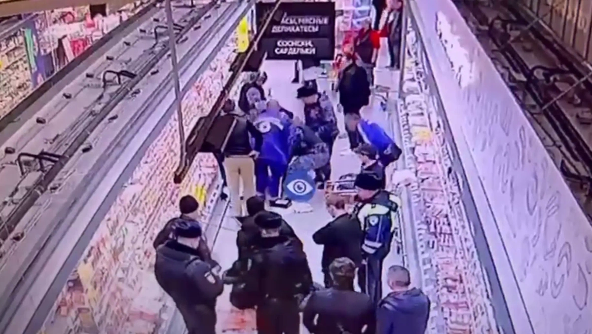 Первые минуты после нападения неадекватного мужчины на покупателей в петербургском гипермаркете «Окей». Видео © Telegram/Росгвардия. Северо-Западный округ