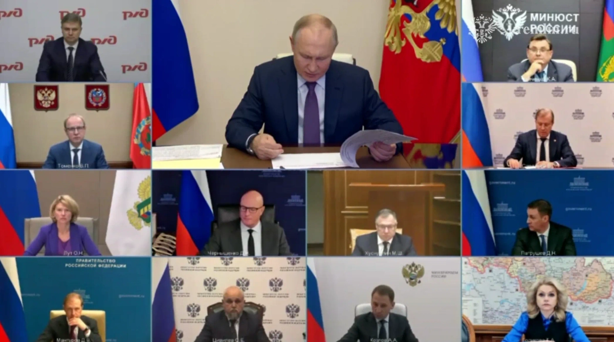 Путин на совещании с членами кабмина по развитию сельских территорий. Видео © Telegram / Кремль. Новости