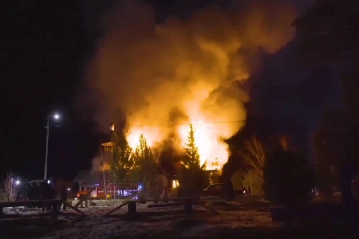 Кадры с пожара в храме под Красноярском. Видео © Telegram / Администрация посёлка Кедровый