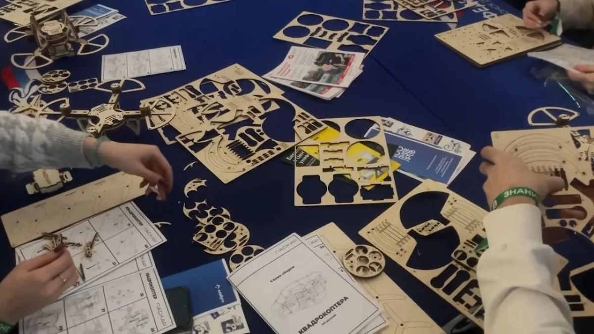 Подростки собирают деревянные модели дронов на просветительском марафоне «Знание. Первые». Видео © Life.ru
