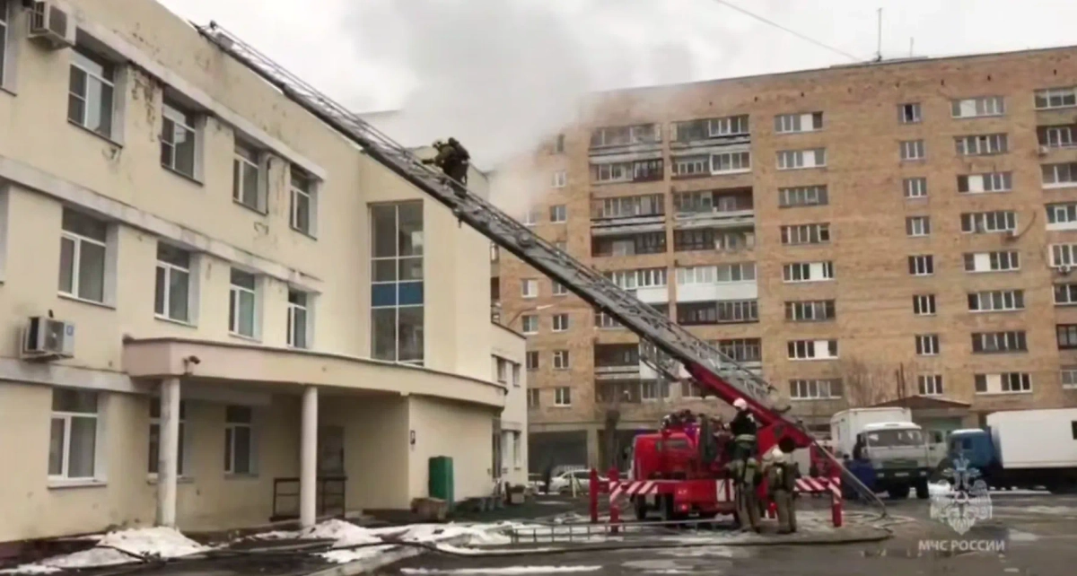 Спасатели эвакуировали человека с горящей крыши больницы в Екатеринбурге