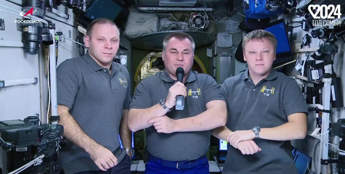 Поздравление с Днём матери от экипажа МКС. Видео © Telegram / Госкорпорация «Роскосмос»