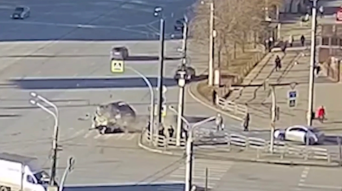 Водитель на полной скорости врезался в пешеходов в Челябинске. Видео © SHOT