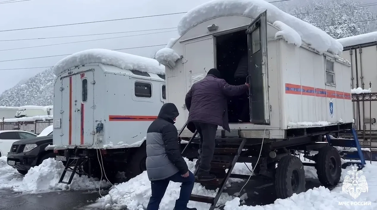 МЧС России развернуло пункты обогрева у КПП «Верхний Ларс». Видео © Telegram / МЧС России