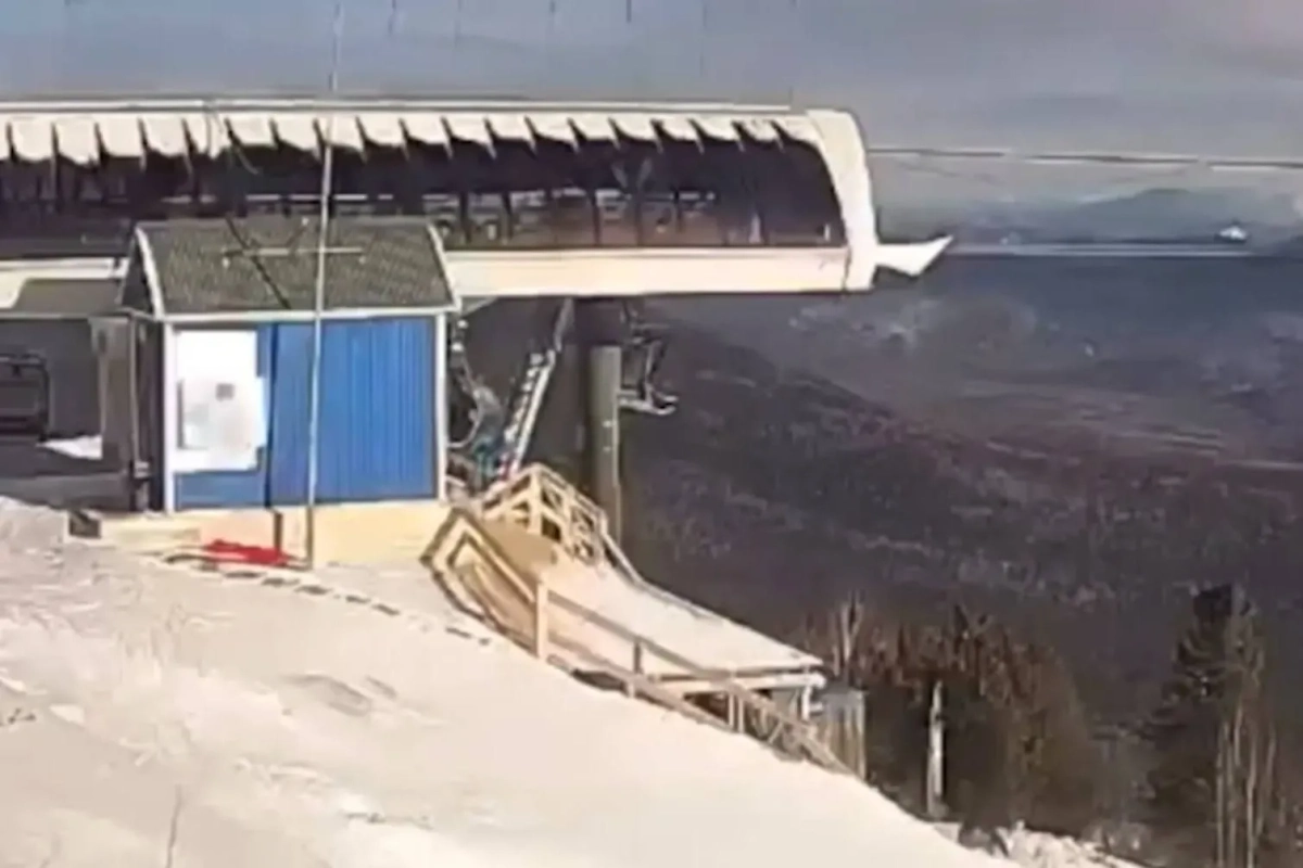 Кадры падения ребёнка из кабинки подъёмника в Шерегеше. Видео © Telegram / Mash Siberia