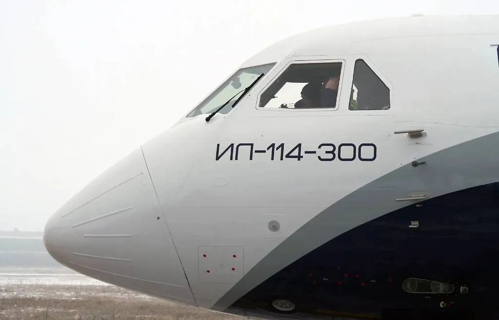 Новый российский пассажирский самолёт Ил-114-300 во первого время полета на аэродроме в Жуковском. Обложка © Пресс-служба ГК «Ростех»/ТАСС