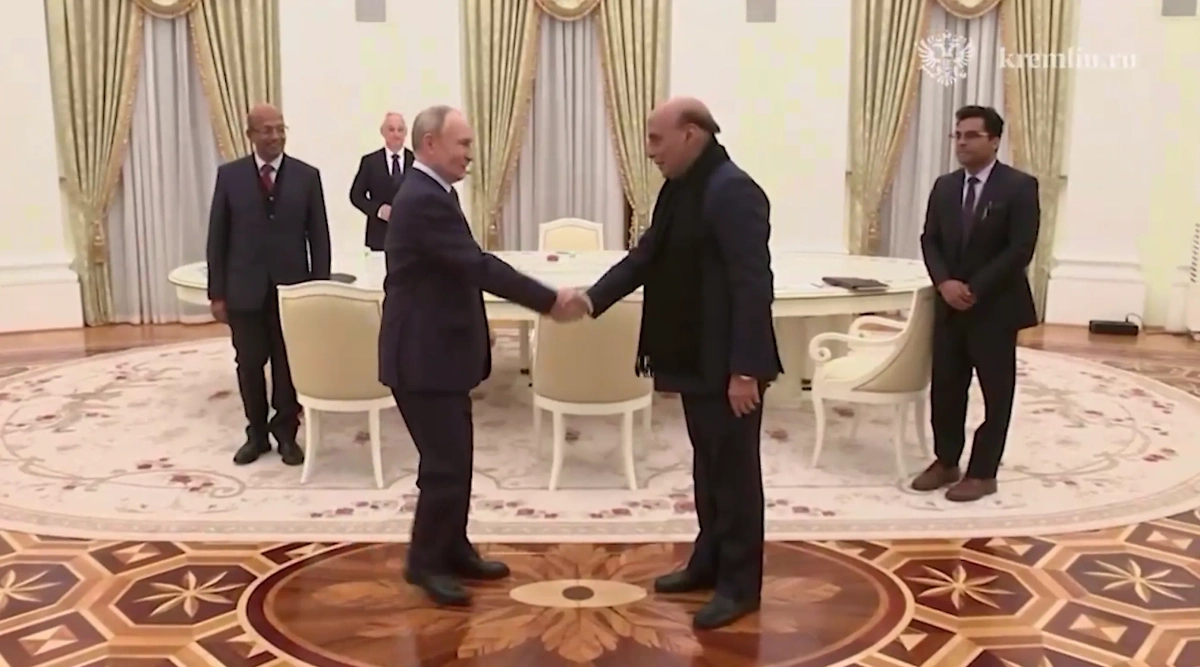 Встреча Владимира Путина и Раджнатха Сингха в Кремле. Видео © Telegram / «Кремль. Новости»