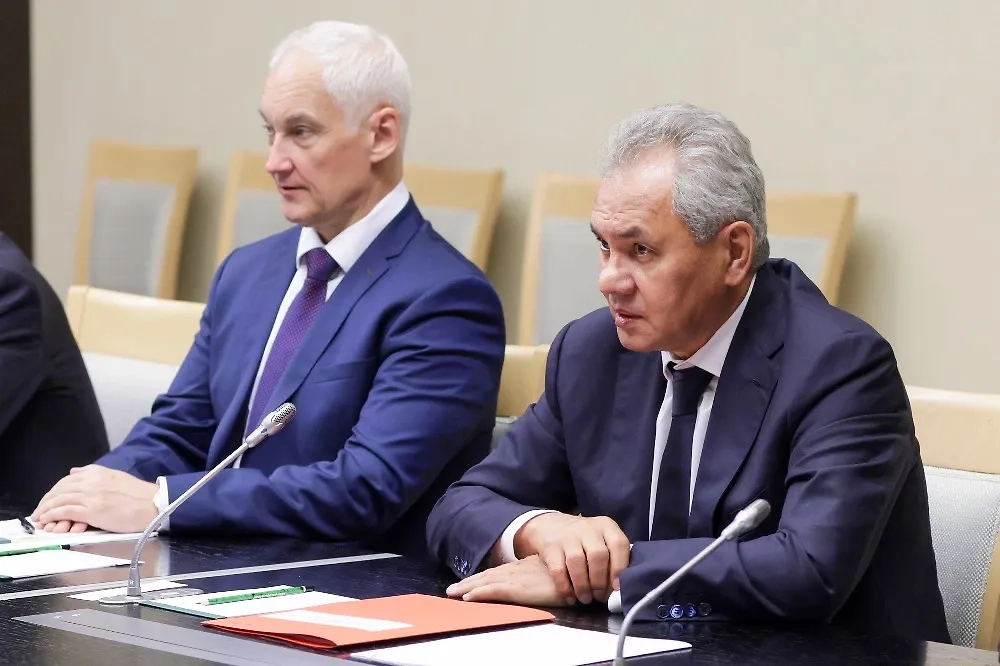Министр обороны России Андрей Белоусов и секретарь Совета безопасности РФ Сергей Шойгу. Обложка © ТАСС / Пресс-служба президента РФ / Гавриил Григоров
