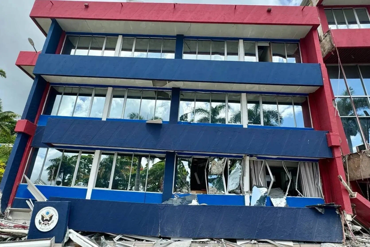 Пострадавшее во время землетрясения Посольство США. Обложка © X / jeangene_vilmer