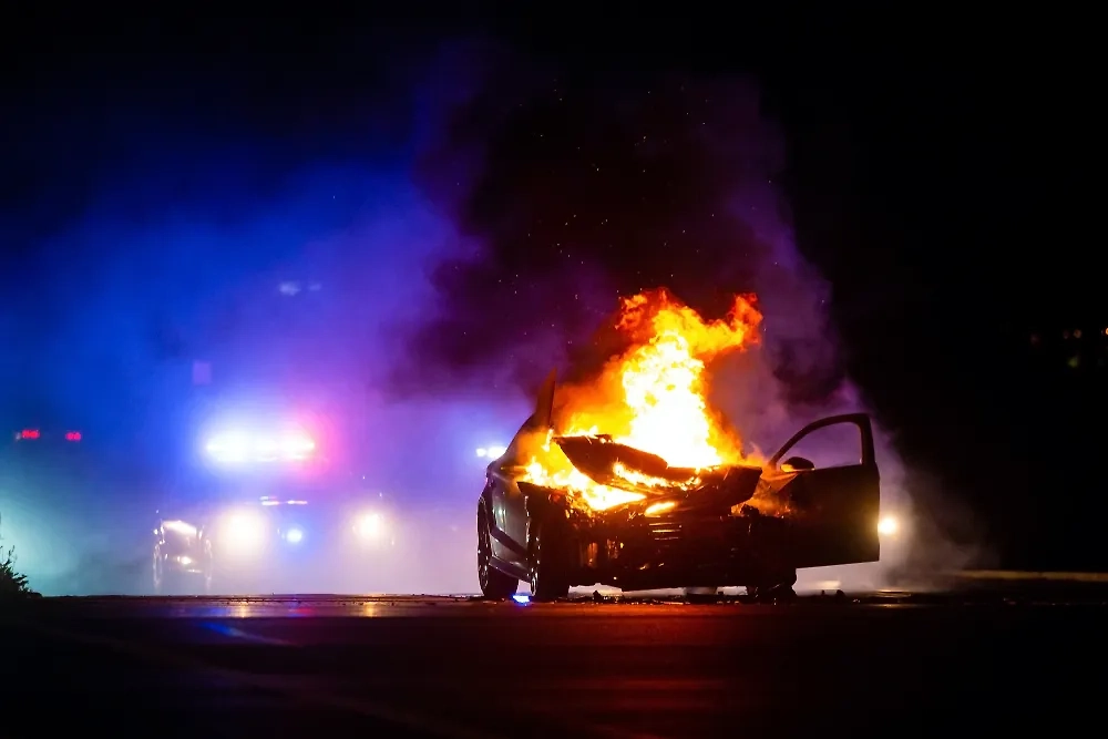 Полицейский уазик подожгли коктейлем Молотова в Екатеринбурге