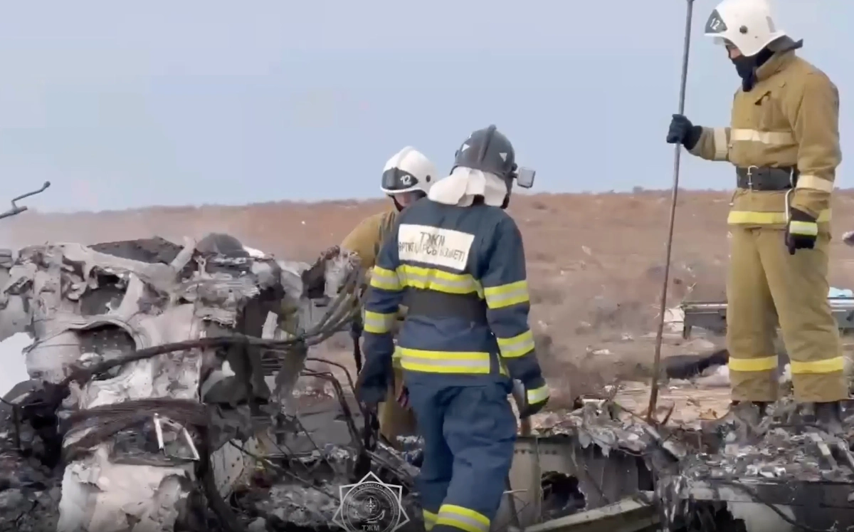 Работа спасателей на месте падения самолёта в Казахстане. Видео © Telegram / 112 KZ