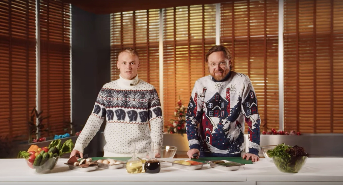 В этом году сборная России решила по полной поздравить болельщиков с Новым годом и опубликовать ещё один предпраздничный ролик. На видео 55-летний тренер и 22-летний нападающий готовят одно из главных блюд праздника — салат оливье. Правда, у Тюкавина не всё получается.