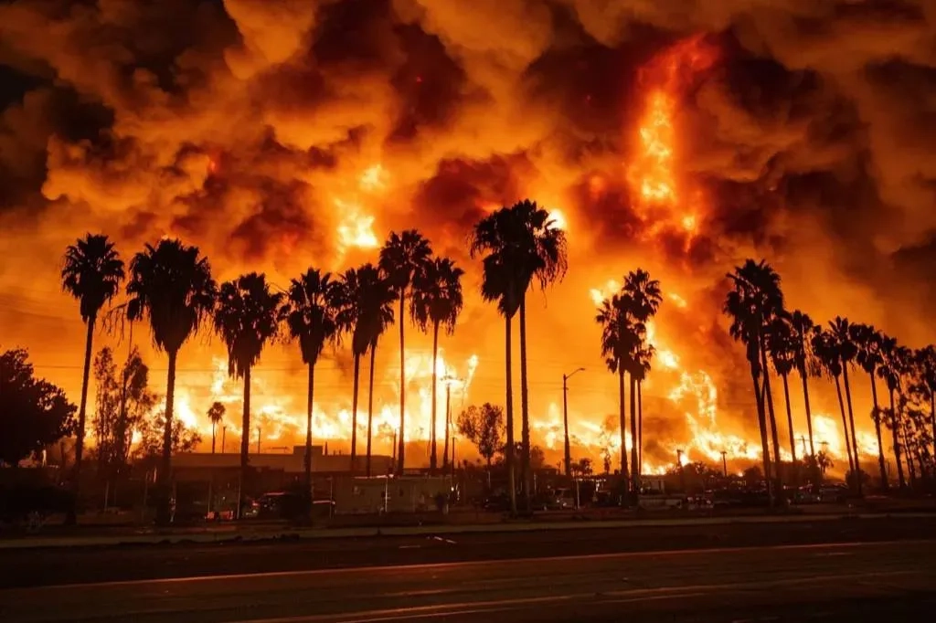 7 января в западной части Лос-Анджелеса начался лесной пожар, который усилился под воздействием ветра. Власти объявили обязательную эвакуацию для жителей района Пасифик-Палисейдс. К 8 января площадь возгорания увеличилась до 13,44 квадратных километров.