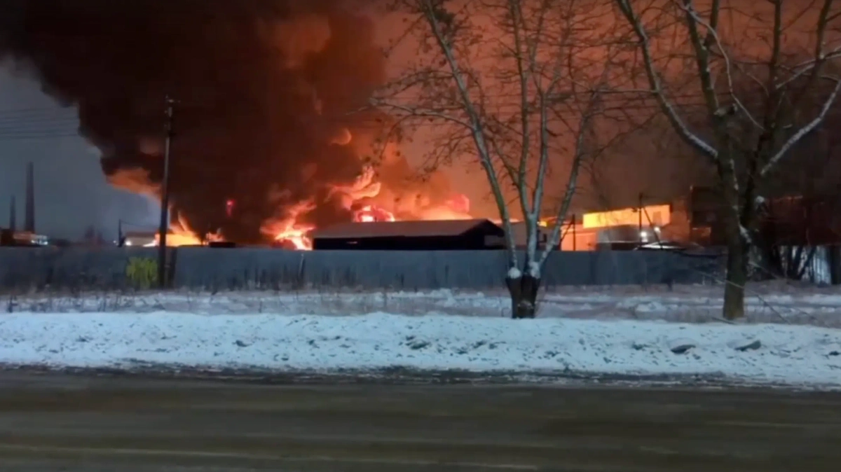 Пожар на заводе в Гатчине. Видео © SHOT