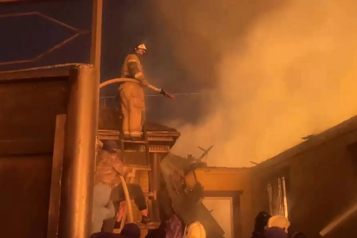 Кадры тушения пожара. Видео © Telegram / МЧС России
