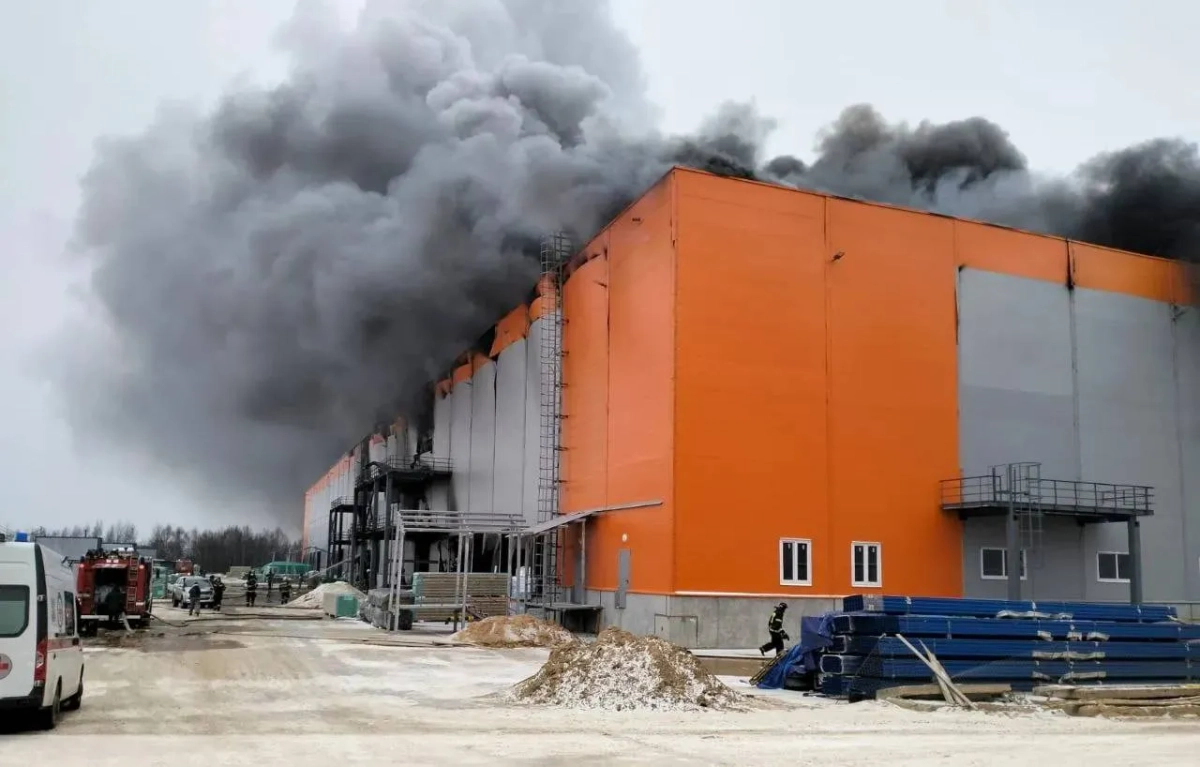 Склад полыхает на площади 10 тысяч «квадратов» в подмосковном Клину